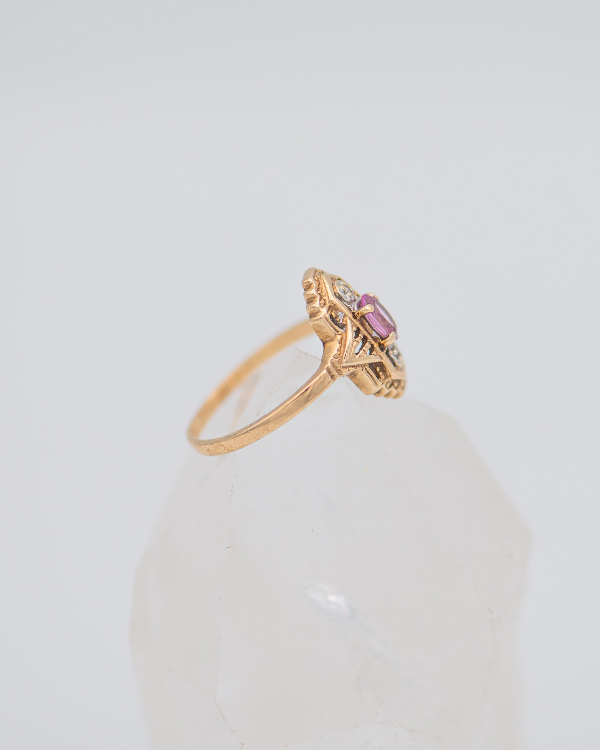 Pink Oval stone; art deco ring;