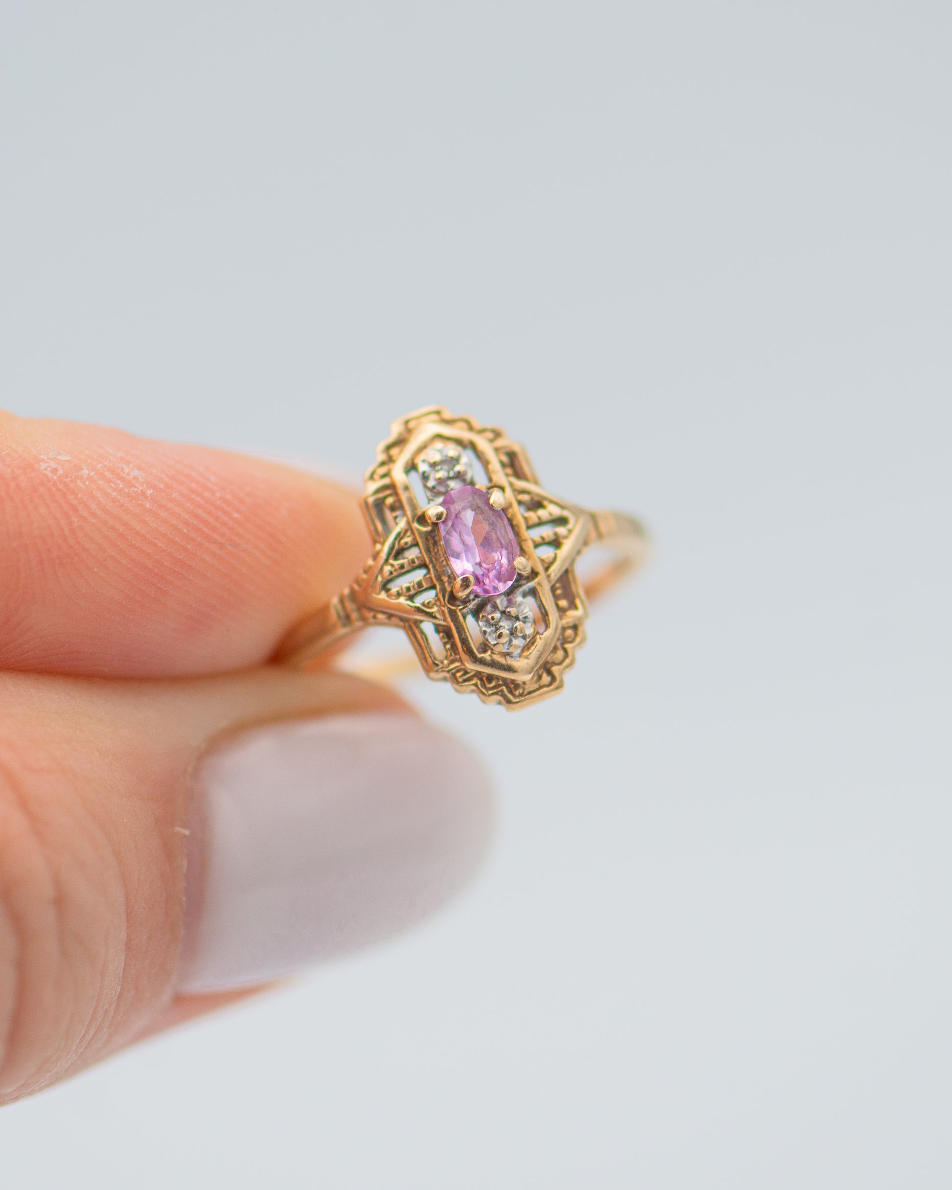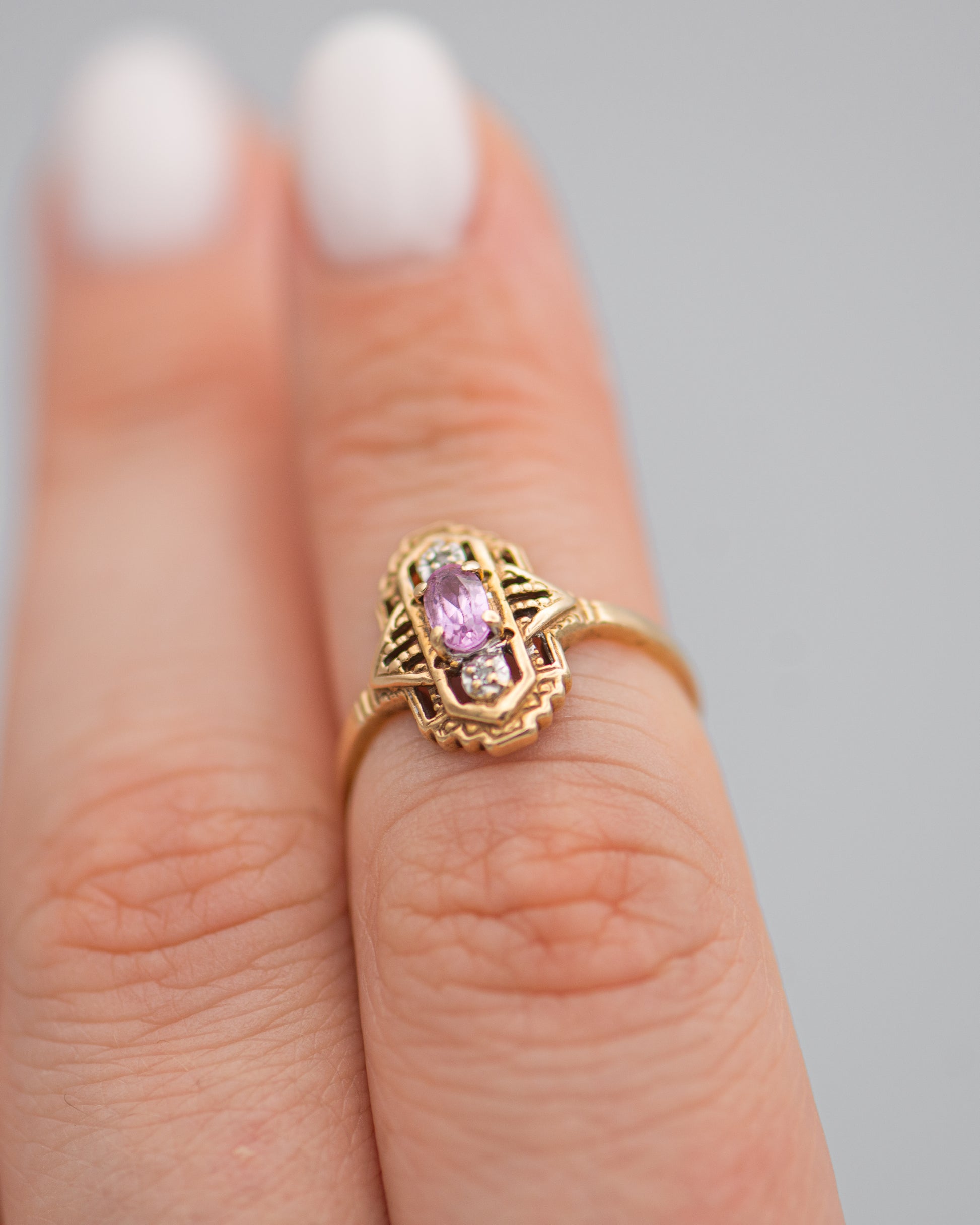 Art Deco Style Ring With Pink Stone 0093