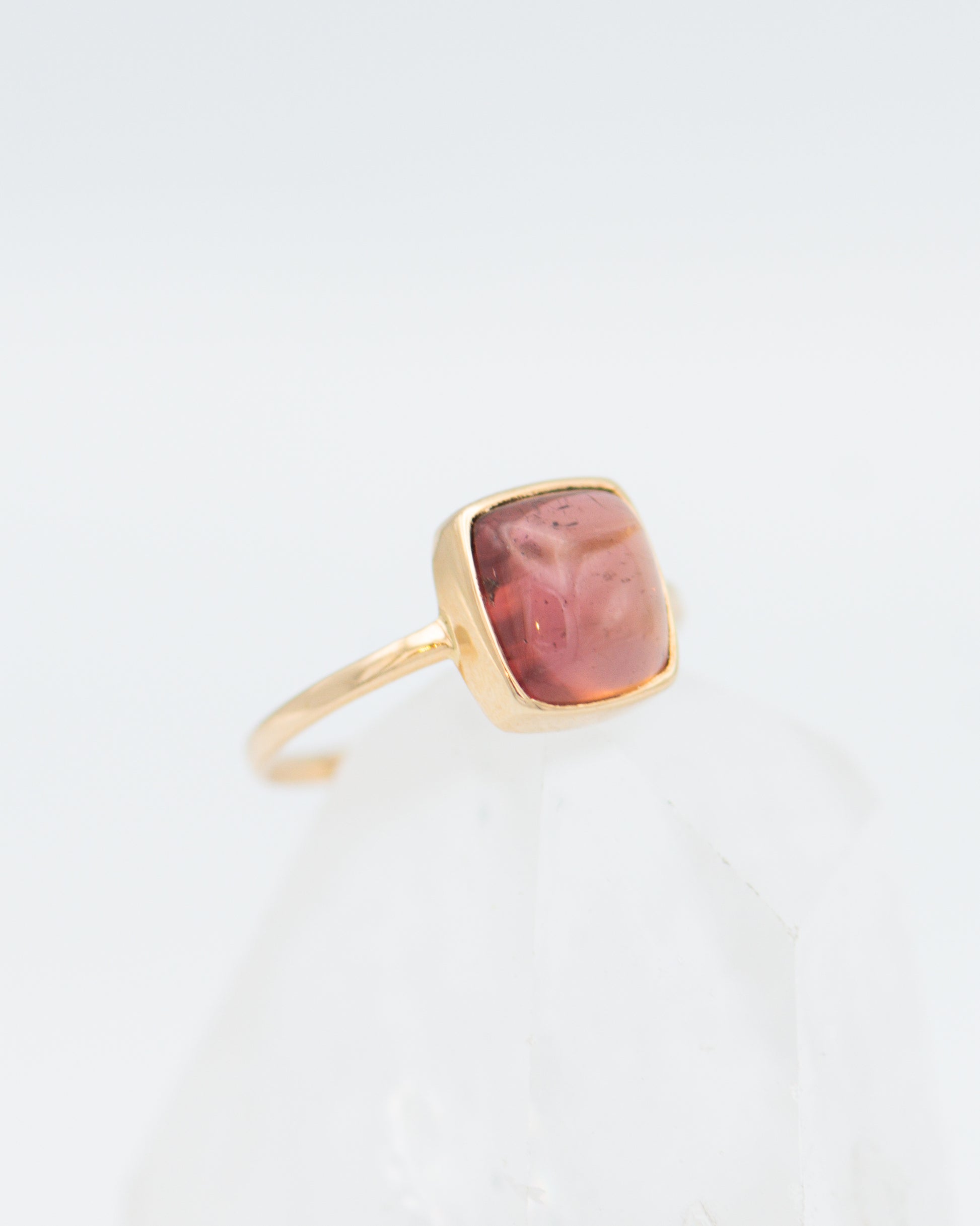Pink stone ring; pink tourmaline ring; square pink ring; rectangle stone;
