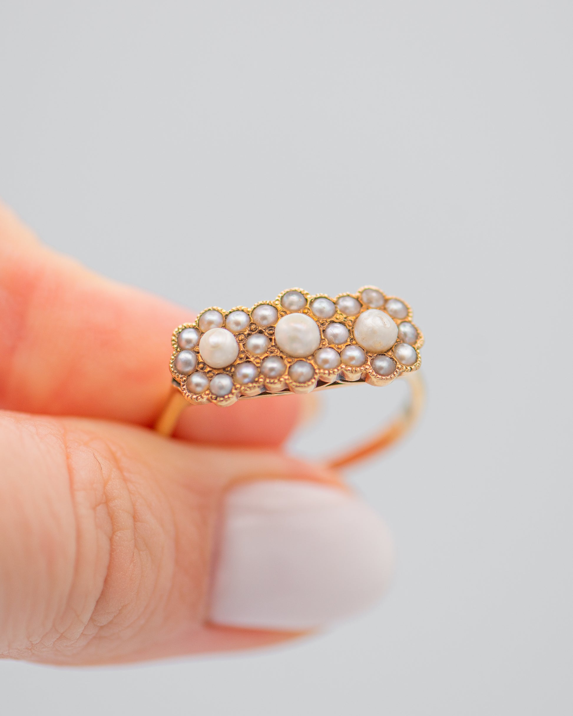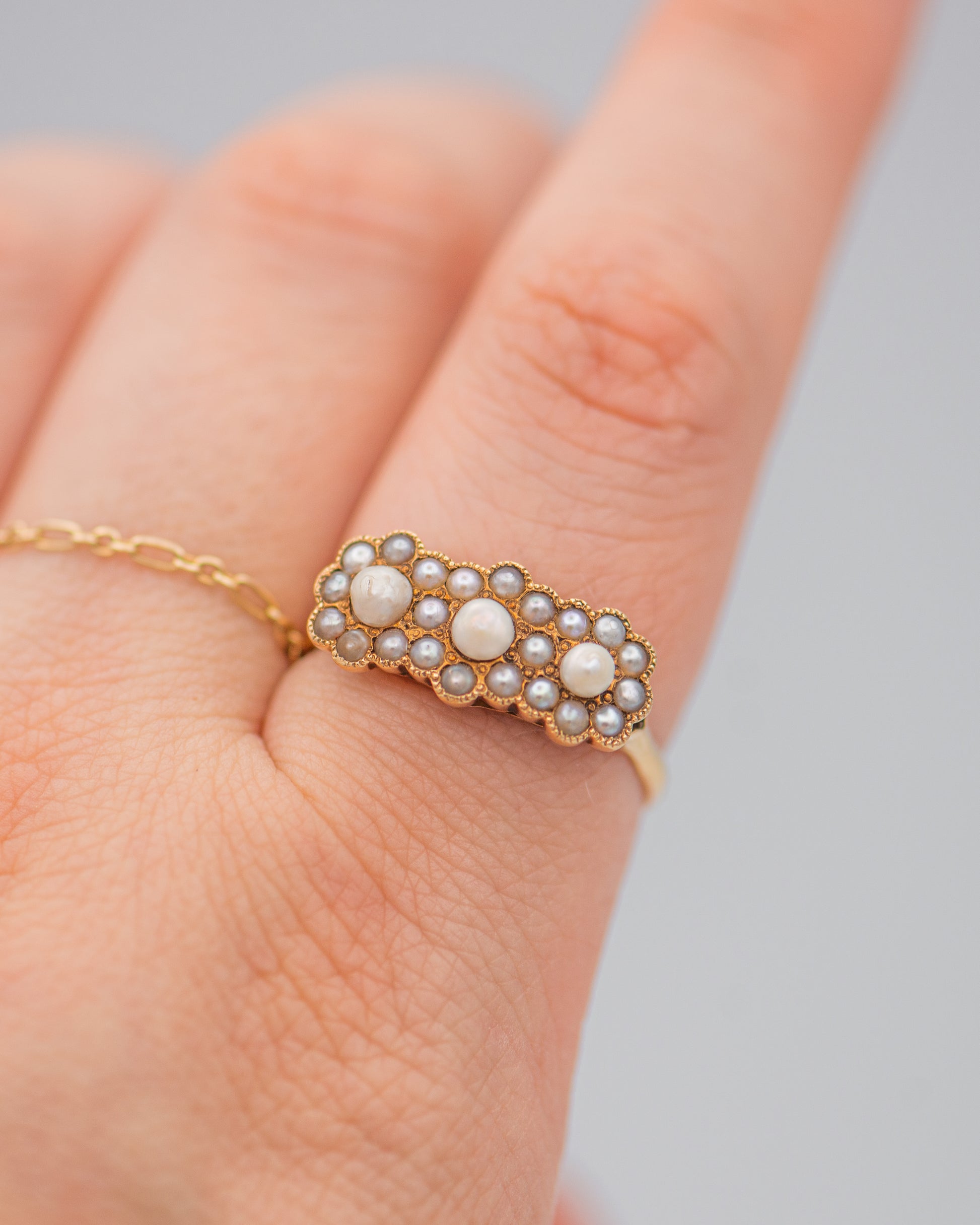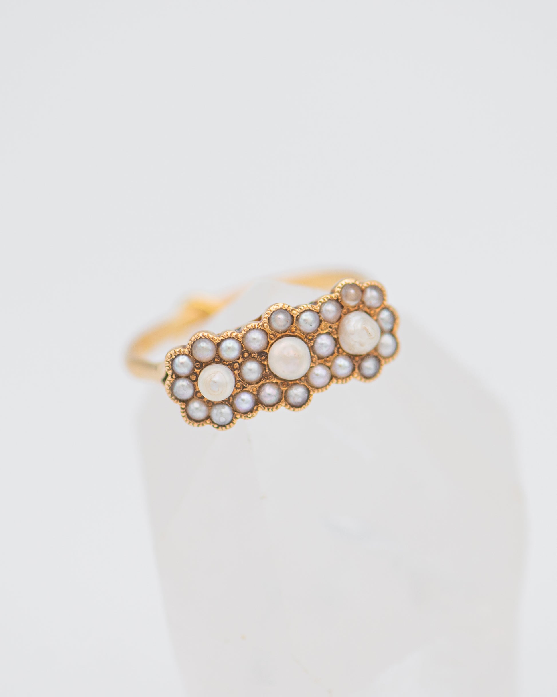 flower ring; three flowers ring; pearls ring; pearl ring;