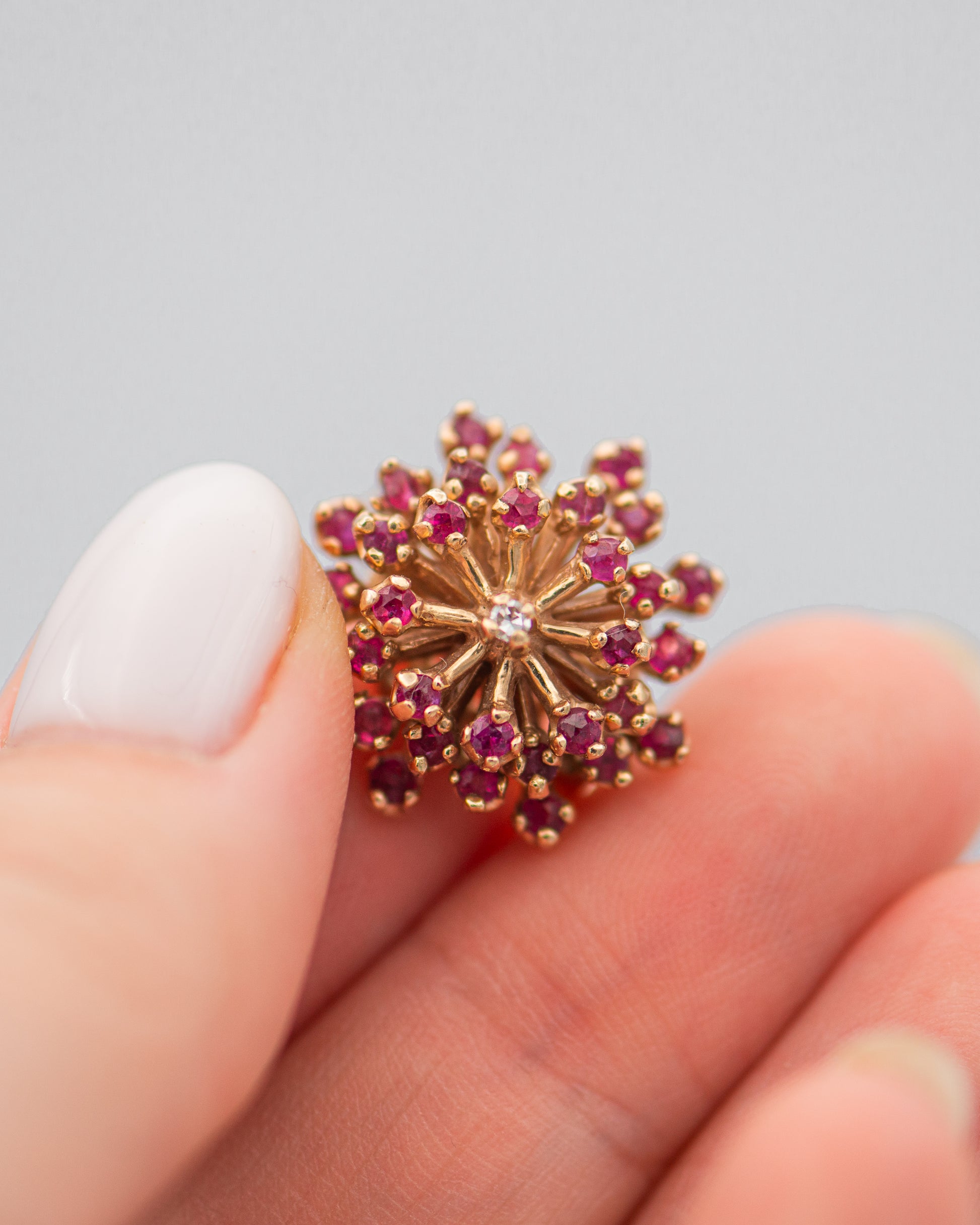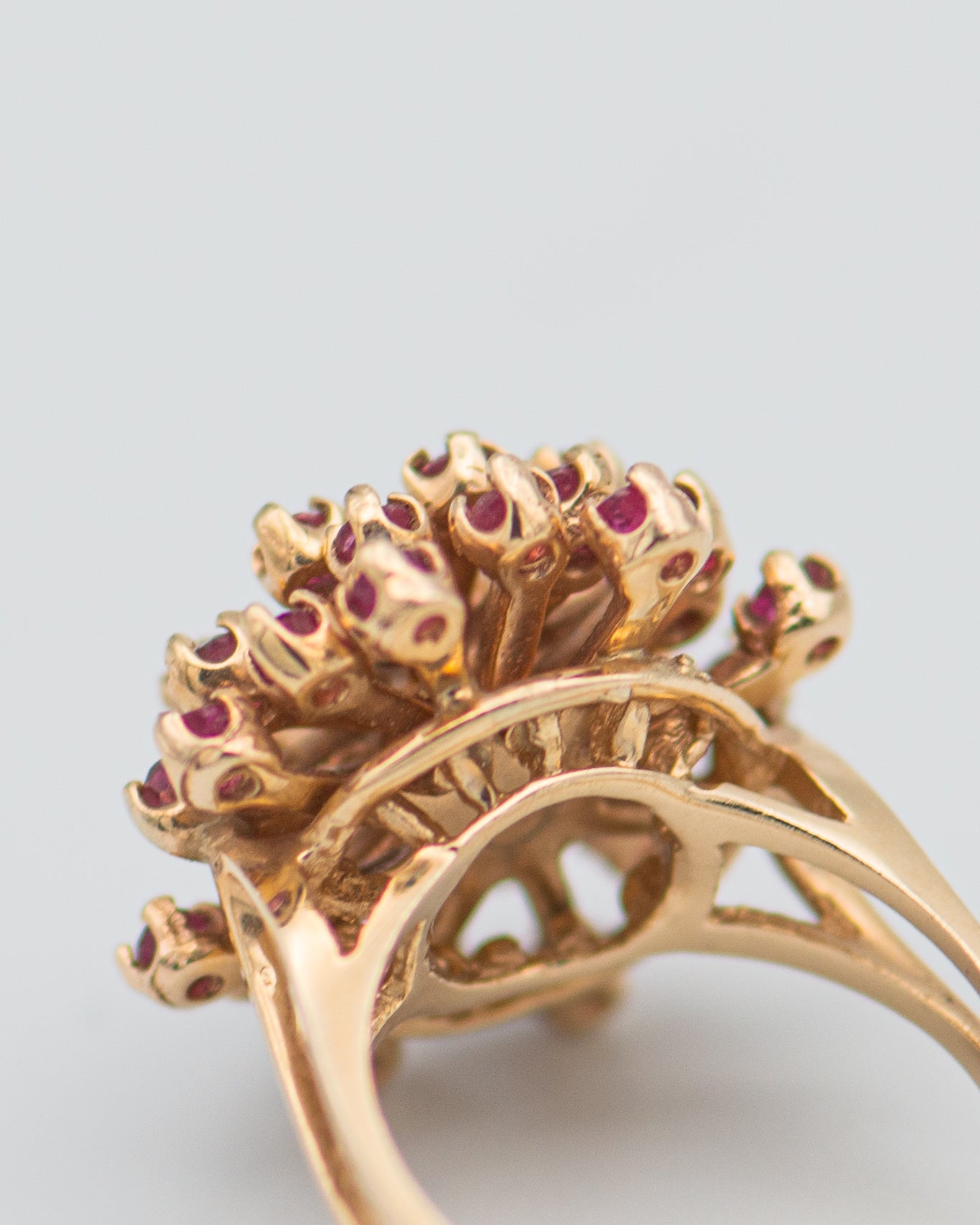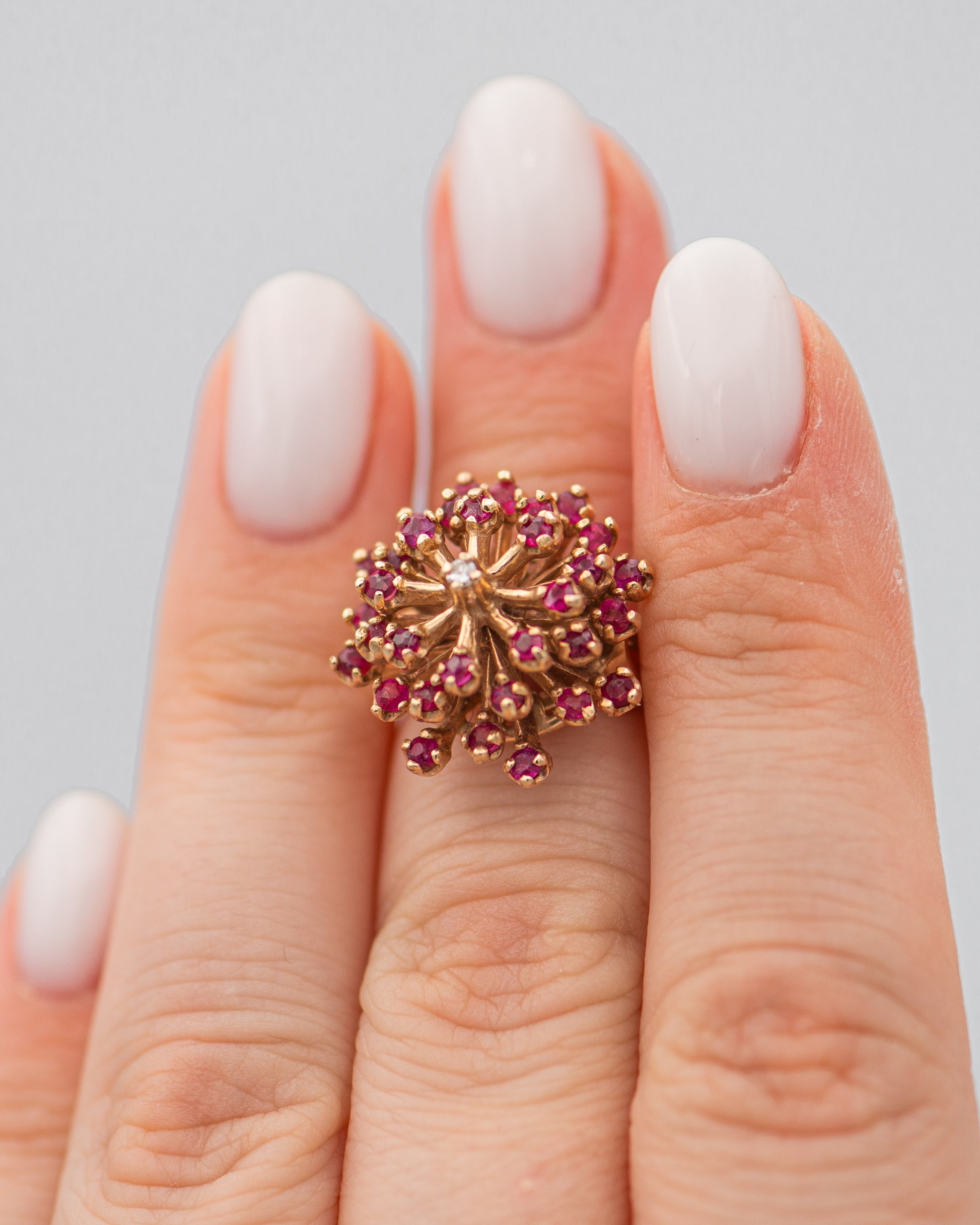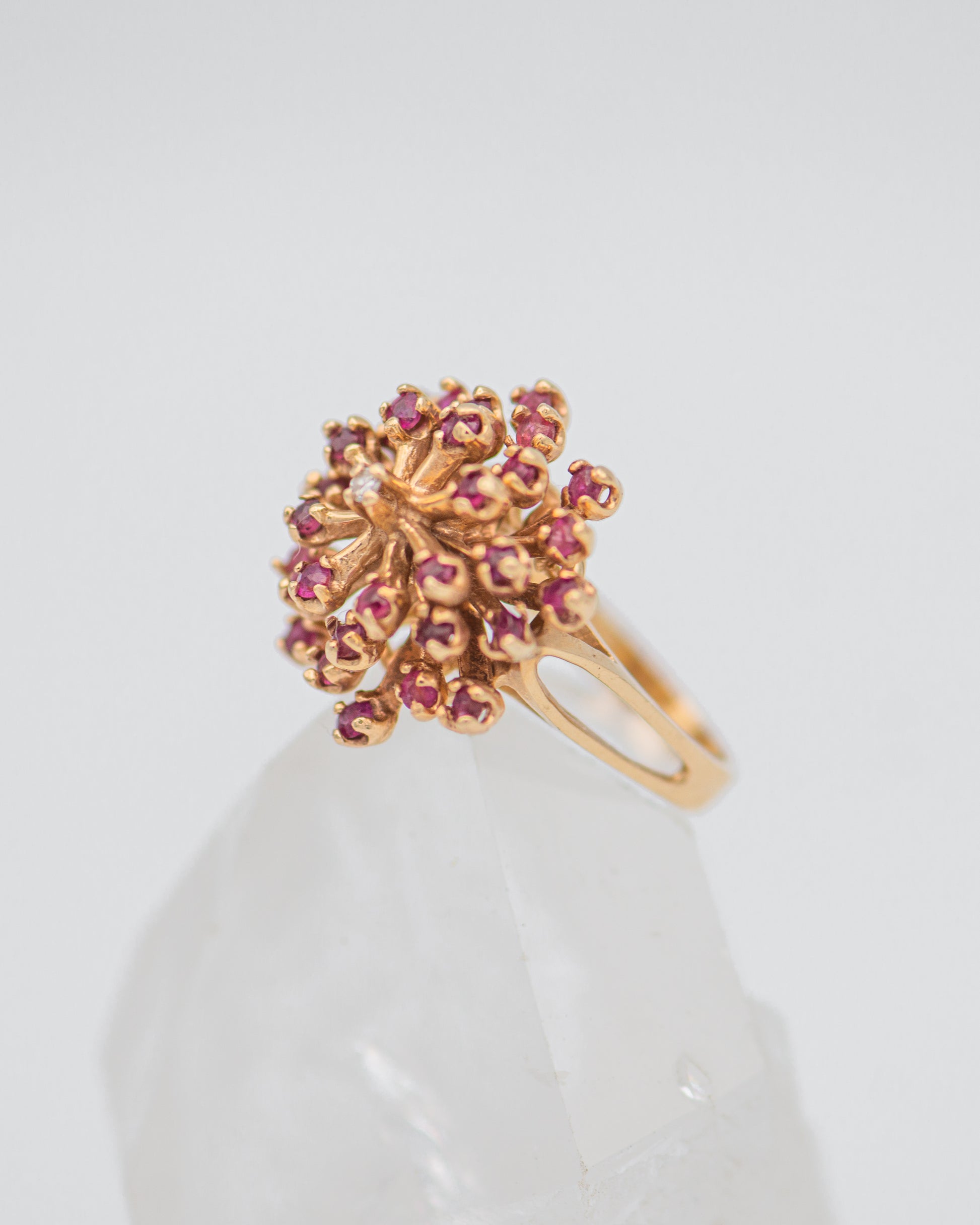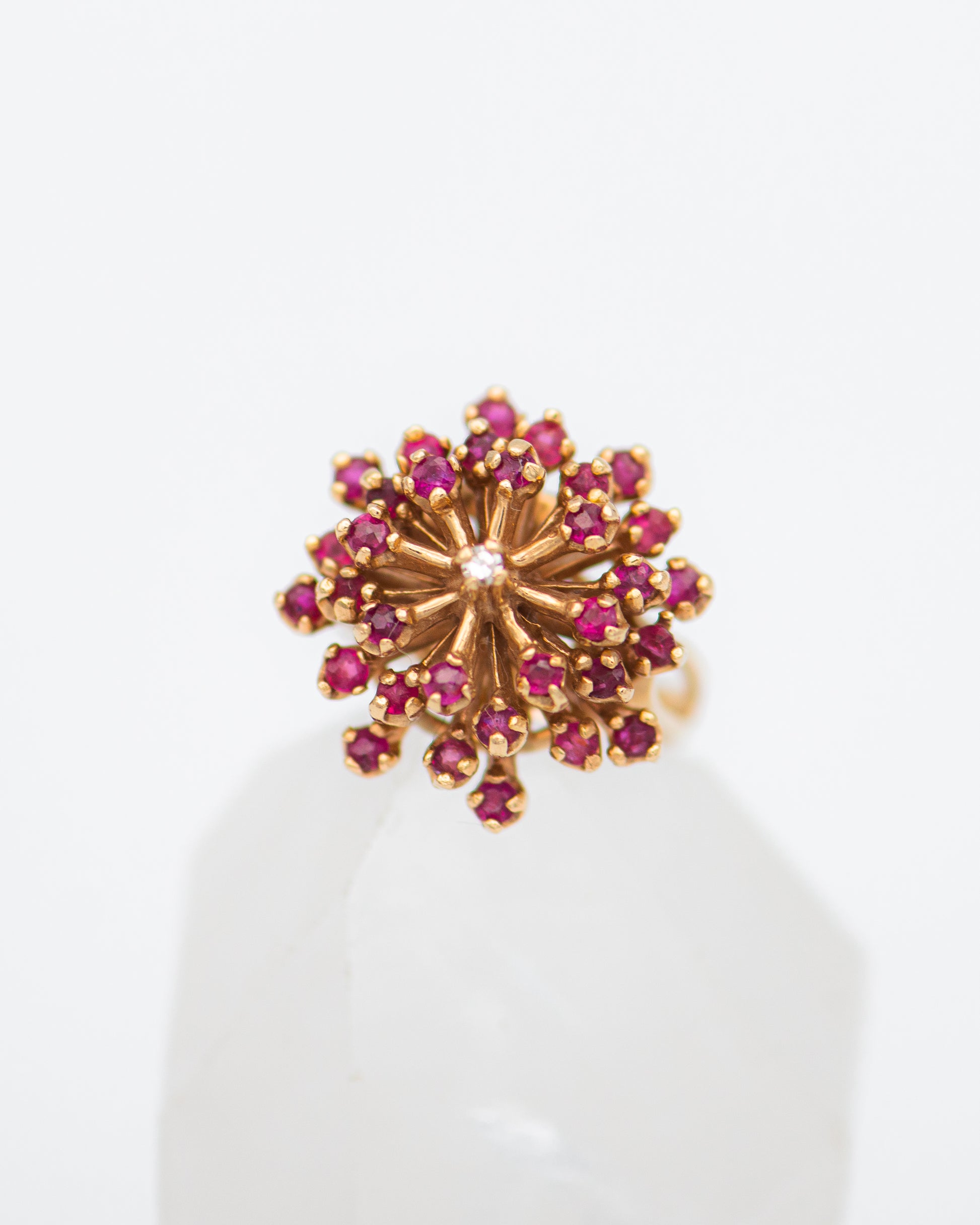 Ruby flower ring; starburst ring; multi ruby ring; red stone ring;