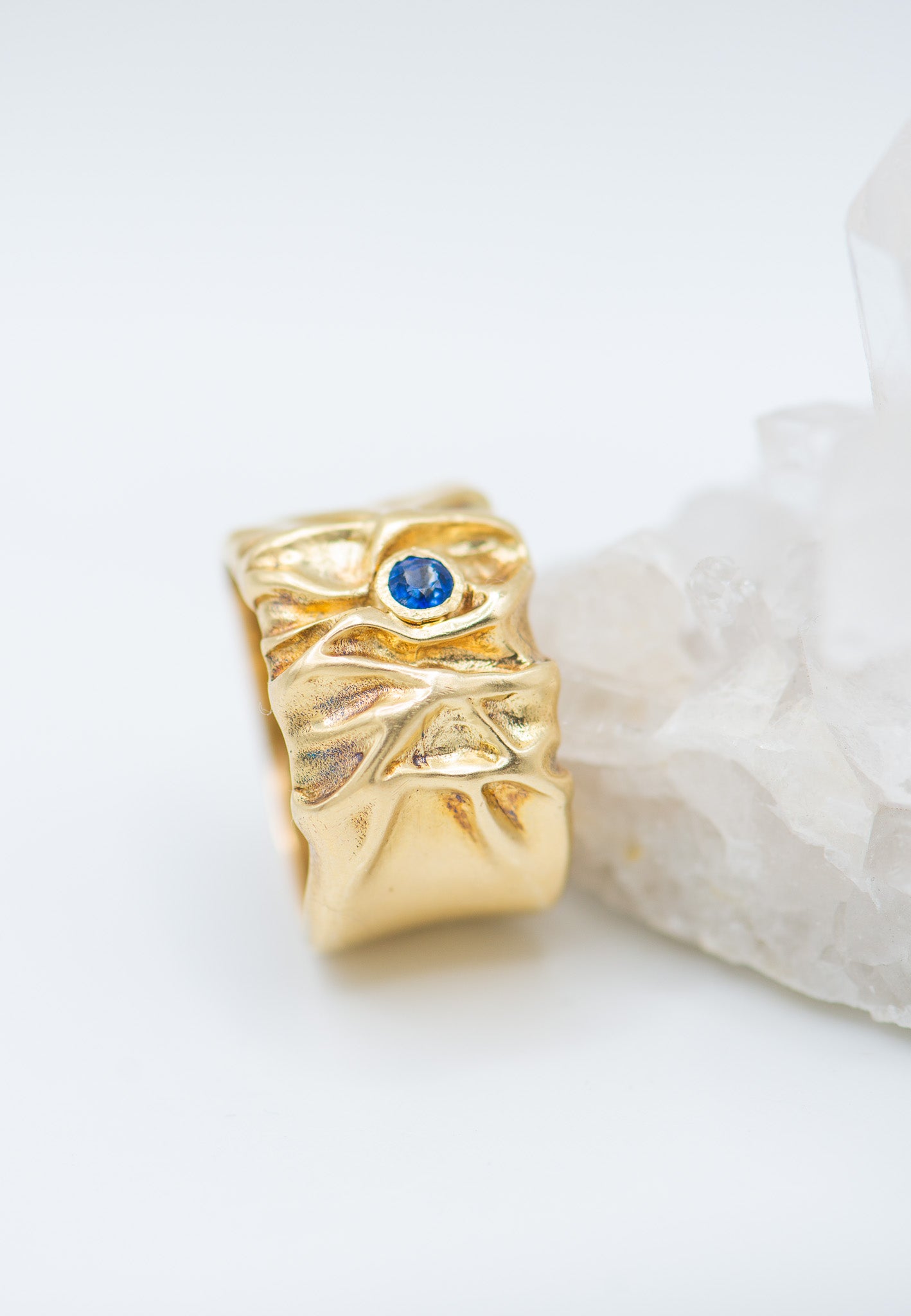 Wrinkled texture Sapphire ring